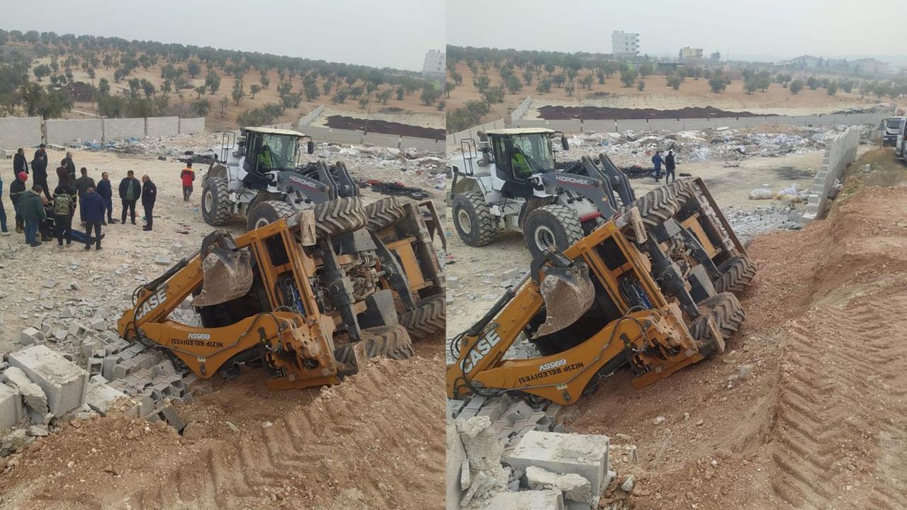 Gaziantep'in Nizip ilçesinde yol çalışması sırasında yaşanan çökme nedeniyle kepçenin devrilmesi sonucu operatör yaralandı.