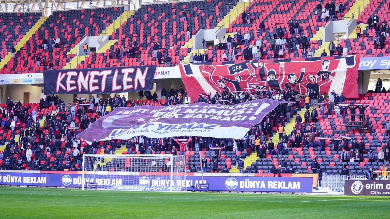 Kırmızı-siyahlı taraftarlar, tribünlerde açtıkları dev Türk bayraklarıyla görsel bir şölene imza atarken, Şehitkamil Belediye Başkanı Av. Umut Yılmaz adına açılan pankart dikkat çekti. “Şehit kanıyla yazılmış, bir namus, Türk Bayrağı” ifadelerinin yer aldığı dev pankart tribünlerden büyük alkış aldı.