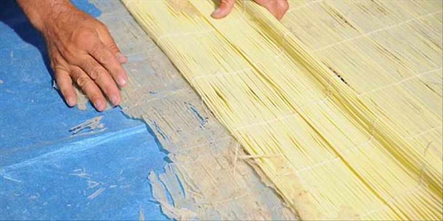 Geleneksel serme usulünün yerini alan makineli sistemle tarhana geniş kurutma alanlarına seriliyor ve güneşte kurutuluyor.