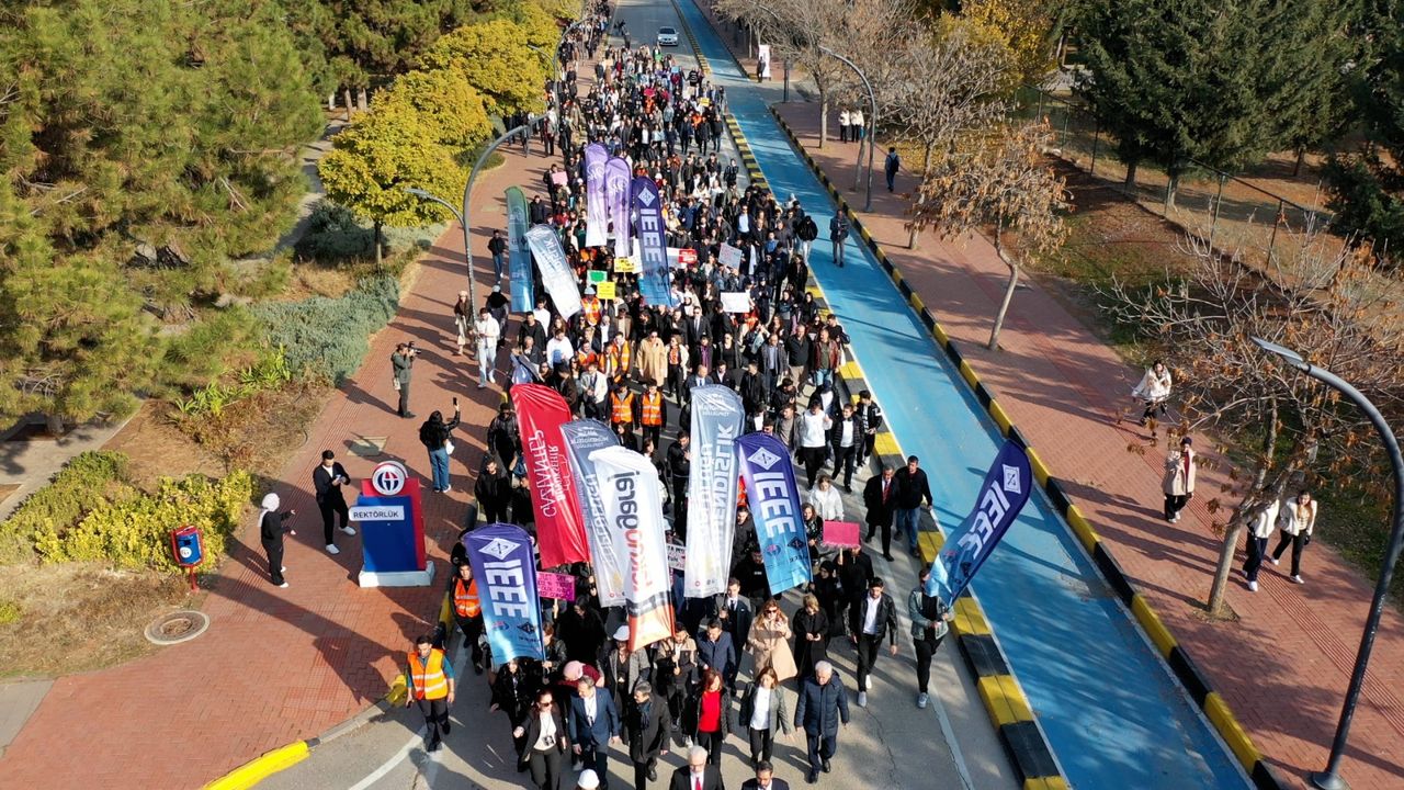 Mühendislik Fakültesi Dekanlığı önünden başlayan yürüyüşe; GAÜN Rektör Yardımcısı Prof. Dr. Bayram Çetin, Mühendislik Fakültesi Dekanı Prof. Dr. Mustafa Bayram, Elektrik Mühendisleri Odası (EMO) Gaziantep Şube Başkanı İslim Arıkan’ın yanı sıra çok sayıda akademik–idari personel ve öğrenci katıldı. Katılımcılar, Gaziantep Büyükşehir Belediyesi Bandosu eşliğinde Atatürk Anıtı’na kadar yürüdü.