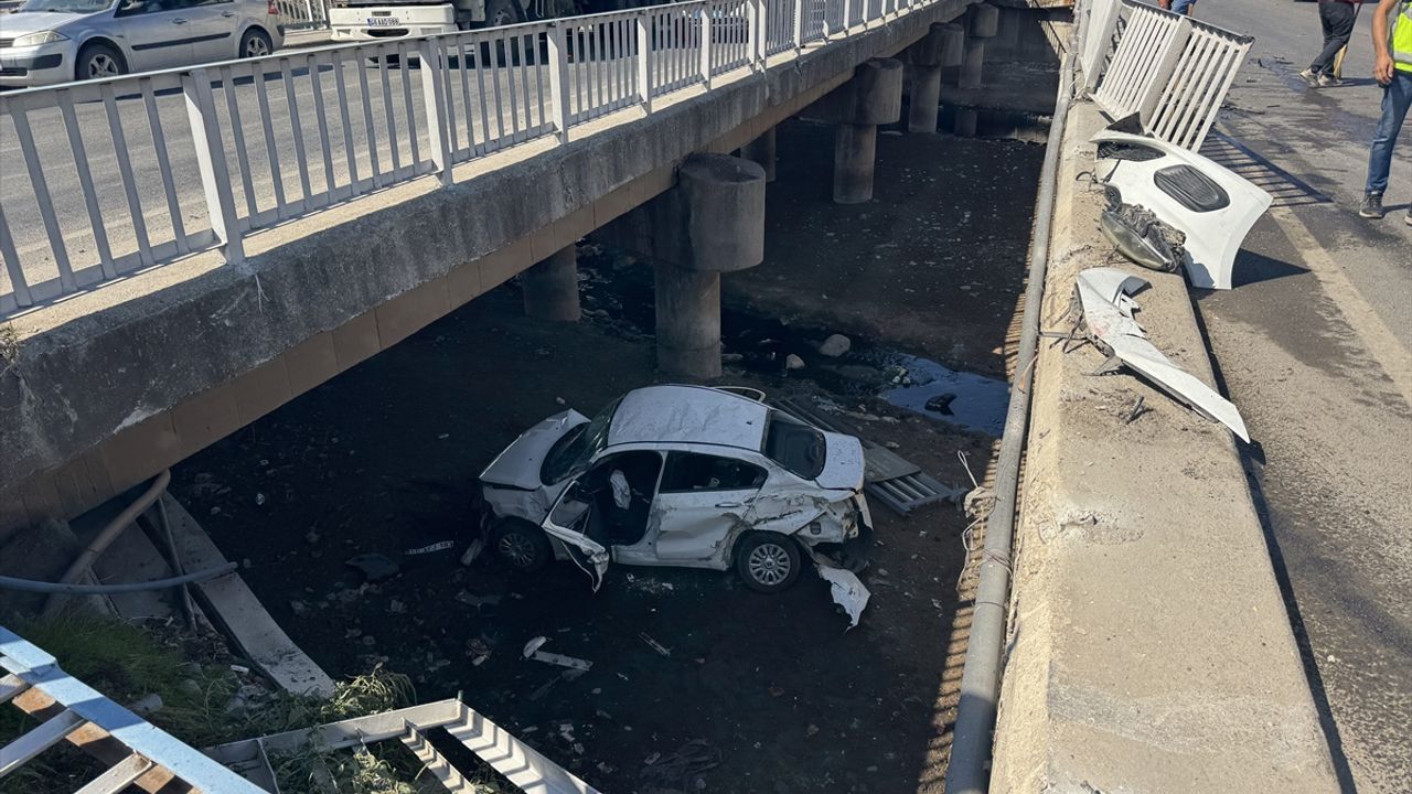 Çarpışmanın etkisiyle otomobil, bariyerleri aşarak köprüden düştü.