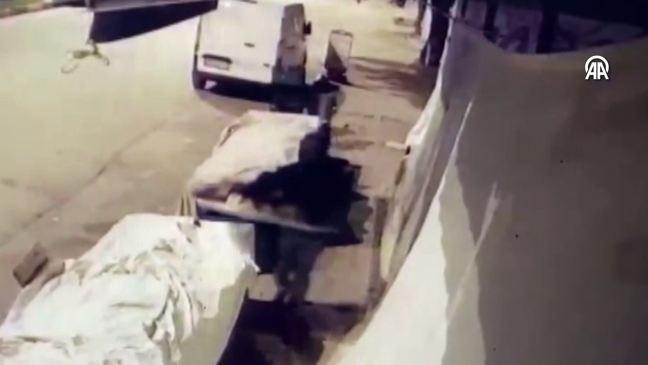 Gaziantep'in İslahiye ilçesinde hırsızın manavdan çaldığı muzları tepsiyle götürme anları iş yerinin güvenlik kamerası tarafından kaydedildi.