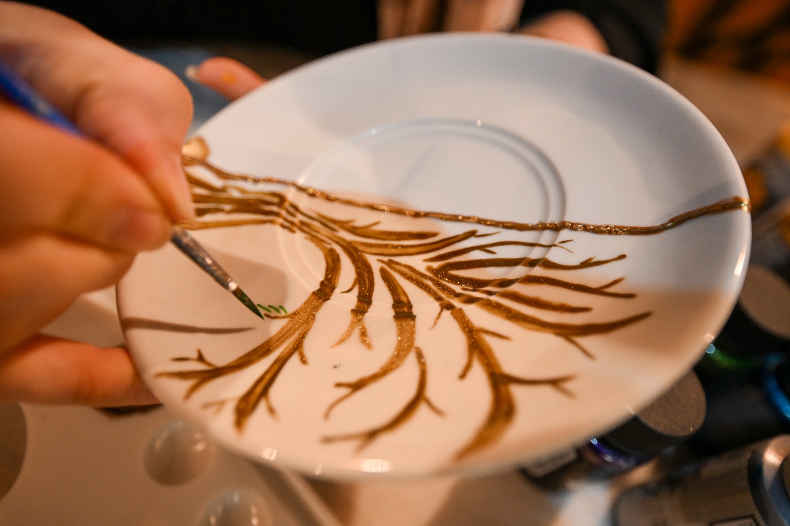 Gaziantep'te belediye bünyesindeki restoranlarda kazara kırılan tabaklar, Kayna Sabun ve Pekmez Müzesi'nde onarıldıktan sonra üzerine çizilen kentin yöresel lezzetleriyle sanat eserine dönüştürülüyor.