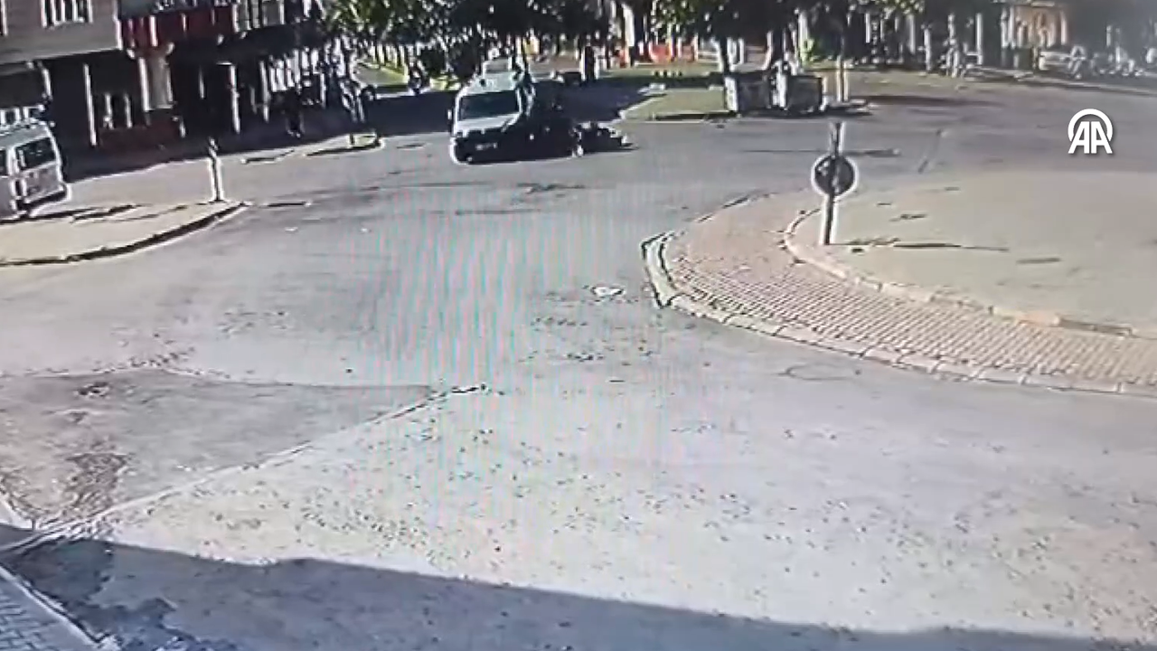 Gaziantep’in Nizip ilçesinde, hafif ticari araçla çarpışan motosiklet sürücüsünün yaralandığı trafik kazası güvenlik kamerasınca kaydedildi.
