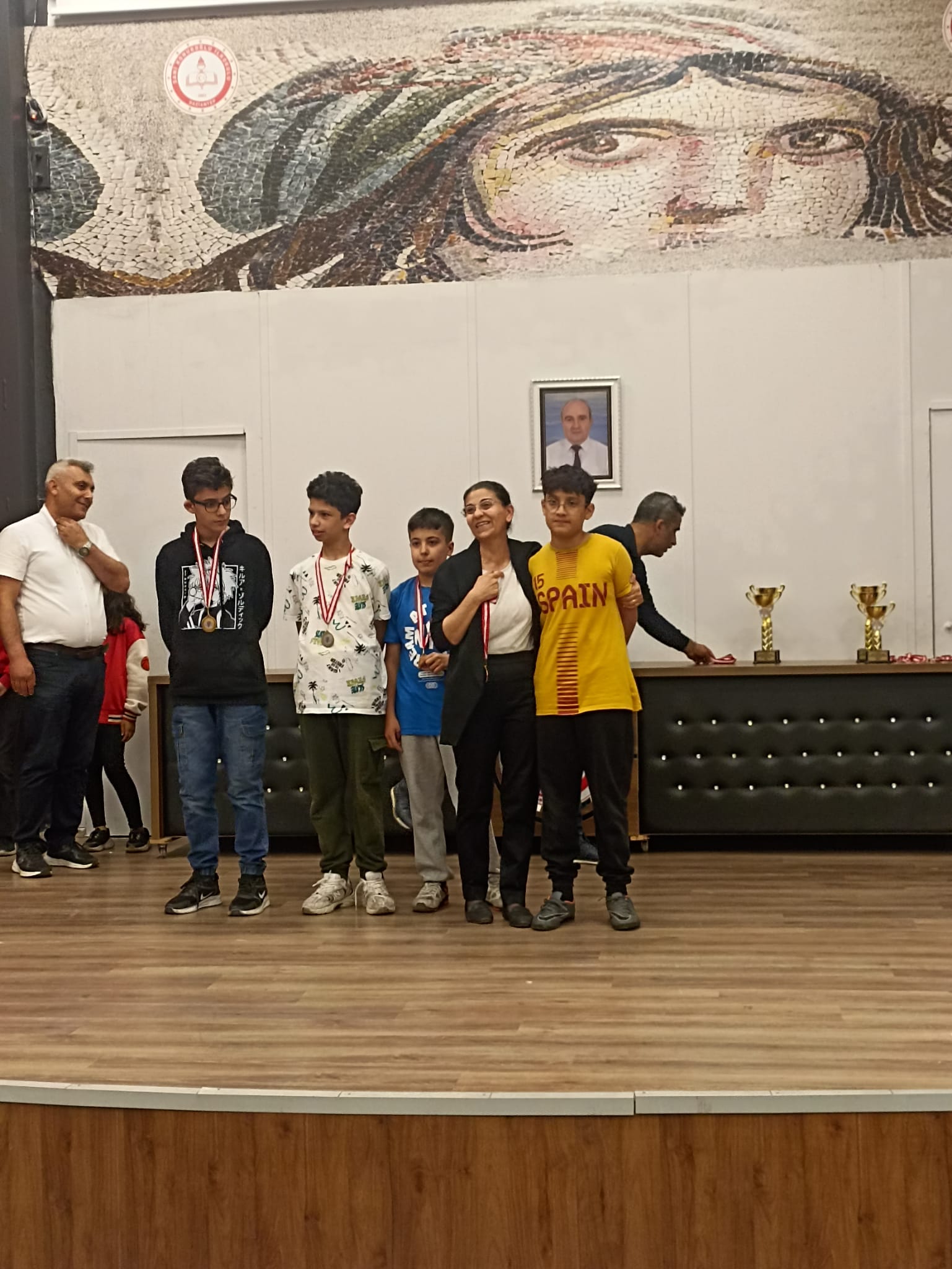14 yaş genel kategorisinin ödüllerini merhum öğretmenimiz ve Veysel Güneş'in eşi Bahriye Güneş tarafından verildi.