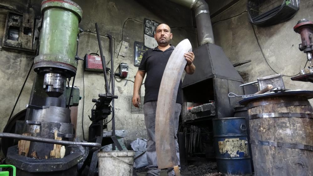 Çapa, balta, kazma, tırmık, bıçak, satır ve dahre gibi aletlerin hem tamirini hem de üretimini yaptığını belirten Kaz, "Sabah başlayıp öğlen 12.00'a kadar bu çekici vuruyoruz. Seri ve hızlı bir şekilde demire vurduğumuz için çekiç sayısını saymamız mümkün değil. Mesleğimiz kolay değil. Normal bir çelik malzemeyi bıçağa, et zırhına ve baklava dilim bıçağına döndürüyoruz. Demire model veriyoruz. Bir de yapmış olduğumuz ürünlerin hepsi tamamen dövmedir. Dövme olmayan ürün dükkanımızdan çıkmaz" diye konuştu.