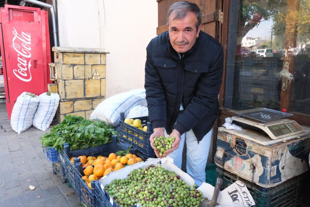Halil Akın, "Zeytini bu sene soğuk da vurdu. Bazı bölgelerde hiç zeytin olmadı, olan yerlerde de az çıktı. Bu yüzden zeytinler çabuk karardı, hasat da bir anda bitti. Fazla bir gelişme yok, çok da iyi bir sezon geçmiyor açıkçası. Evet, az. Hatta oldukça az. Asıl sorun yağmur değil. Tam çiçek döneminde yaşanan soğuk ve don olayı her şeyi etkiledi. Ne ceviz oldu, ne badem, ne fıstık, ne de zeytin. Antep ve tüm Güneydoğu bölgesi bu durumdan etkilendi. Şu anda 95 ile 110 lira arasında değişiyor. Ortalama 100 lira civarında diyebiliriz. Tabii alıyor. Zaten Antep bölgesi zeytine çok hakim. Birinci sınıf zeytinimiz var, başka yerde bu kalite pek yok. Evet, yağlı. Az olmasına rağmen yağ oranı iyi. Geçen sene de hemen hemen aynıydı. Değişen bir şey yok, fiyatlar aynı seviyede gidiyor. Kimsenin de çok bir itirazı yok, fiyatlar makul kabul ediliyor" diye konuştu.